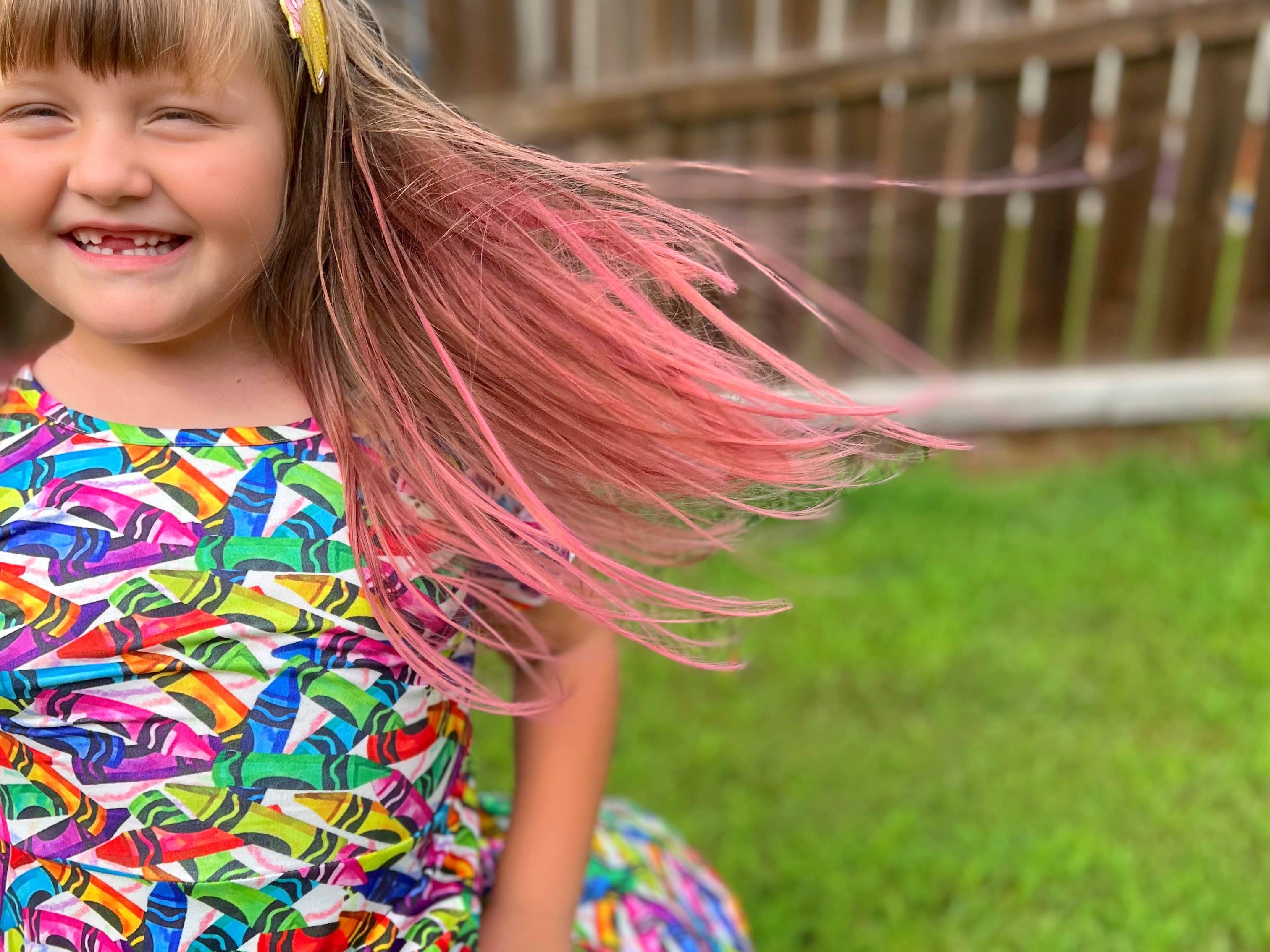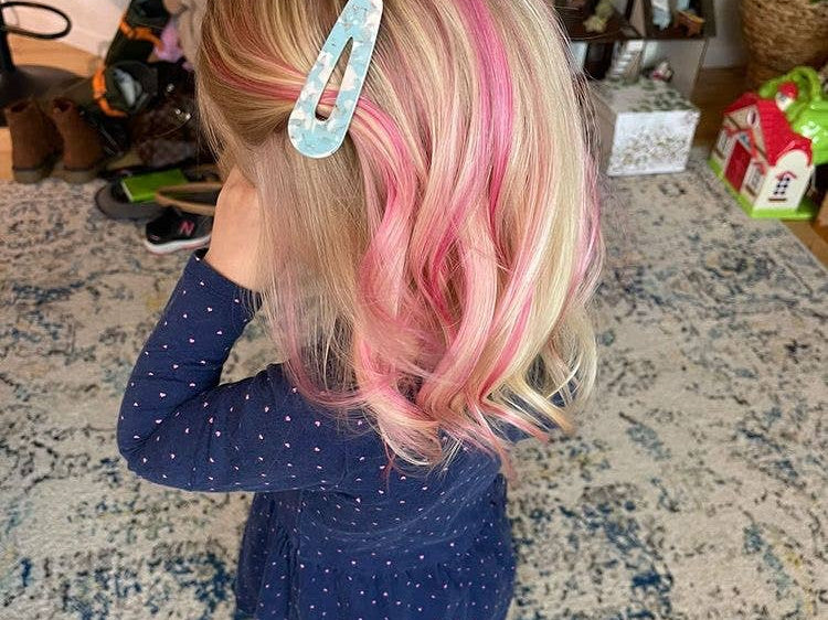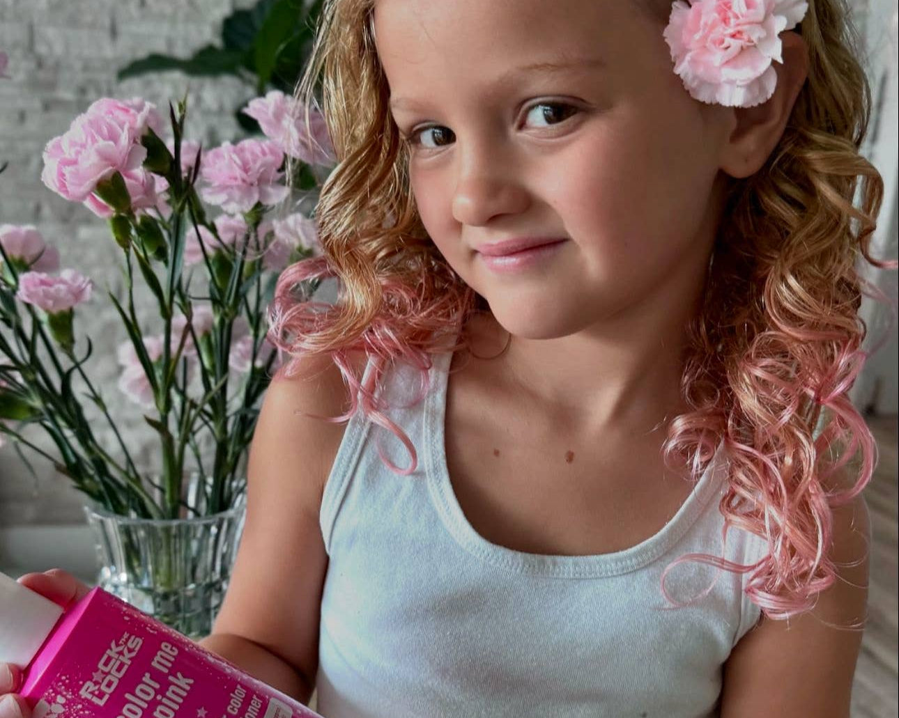 ROCK THE LOCKS Pink Hair Color & Conditioner instantly infuses HOT PINK color into your hair every time you condition. It’s Hair Color AND Conditioner (in one!). This Kid-friendly, Conditioning Hair Color lasts 5-15 shampoos and can be used as often as desired – so get creative again & again! Add color to a small section or your entire hair. Clean, Colorful FUN with No phthalates, sulfates, or parabens!