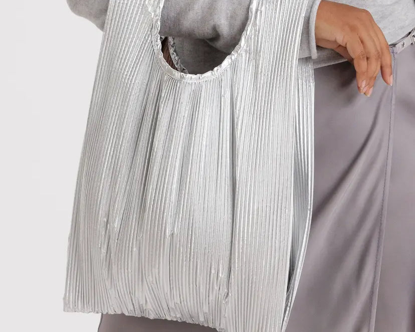 A special, pleated version of our classic Baggu shape that can be worn as a dressier, fashion forward catch-all bag.