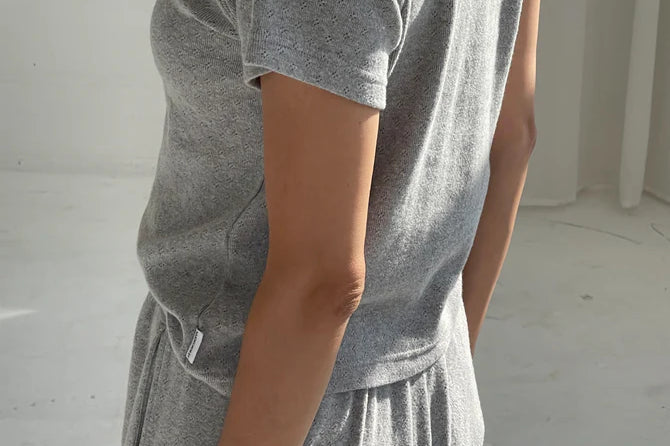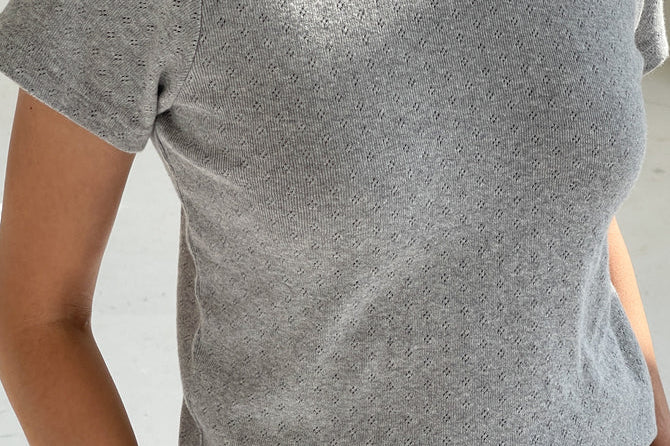 Pointelle Babe Tee | Melange Grey - Le Bon Shoppe