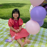 Made from a featherweight, puckered yarn-dye gingham... this dress truly has it all and fits adorably worn oversized or shrunken. We love this dress with ruffled socks, sneakers and lil bikers with some chunky kid-core beaded jewels.