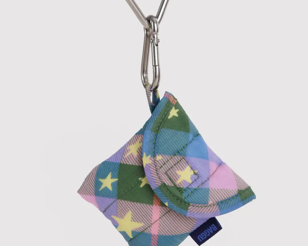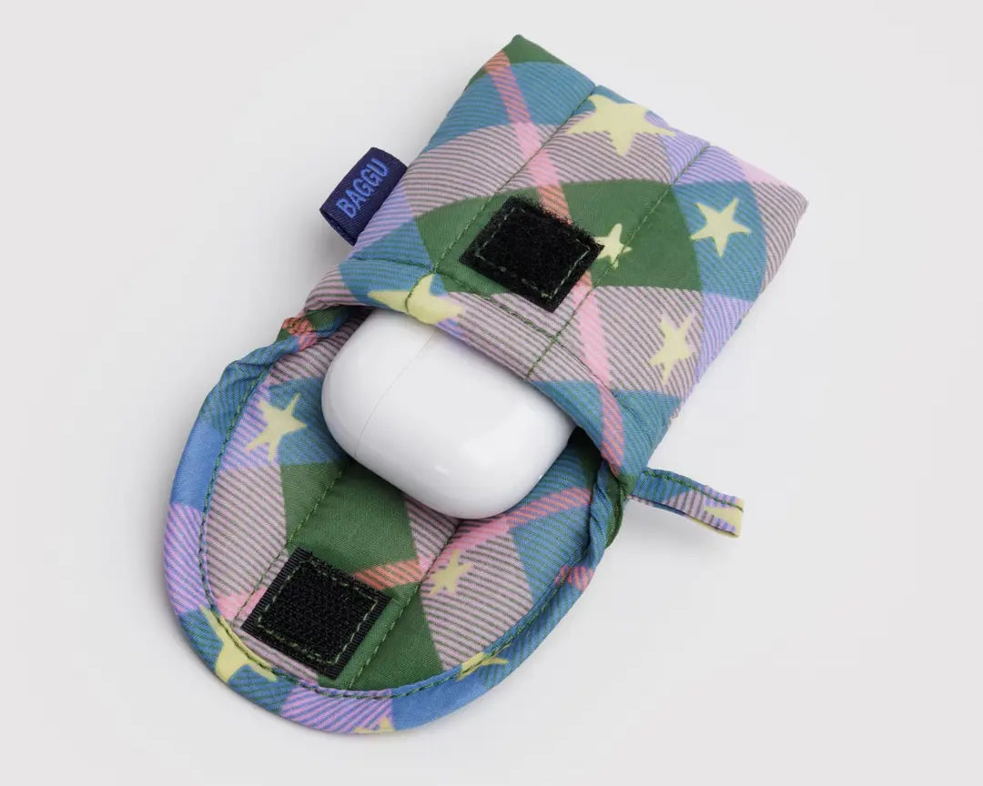 Puffy Earbuds Case - Green Star Plaid - BAGGU