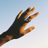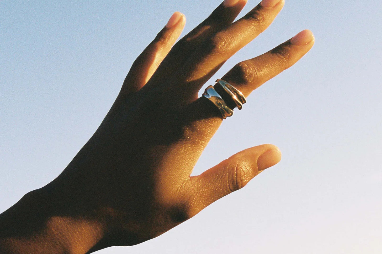 A note on brass rings: The copper in brass rings can react to your ph levels, body sweat, and lotions, causing the area where the ring rests on your finger to turn green. This is harmless and natural. You can apply clear nail polish on the inside to act as a barrier between the metal and your skin. Keep your hands clean, dry, and remove pieces when washing or applying products to keep your ring looking its best.