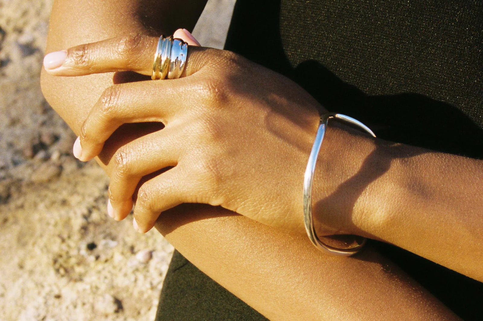 A note on brass rings: The copper in brass rings can react to your ph levels, body sweat, and lotions, causing the area where the ring rests on your finger to turn green. This is harmless and natural. You can apply clear nail polish on the inside to act as a barrier between the metal and your skin. Keep your hands clean, dry, and remove pieces when washing or applying products to keep your ring looking its best.