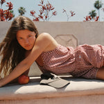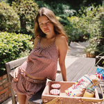 Our new favorite cami, designed with a soft, gathered neckline and an open keyhole back. Made from lightweight cotton gingham, it features delicate spaghetti straps and an adjustable tie for the perfect fit. Finished with a subtle RAT BOI label just below the keyhole. Wear it with our Easy Bloomer Shorts or Dream Skirt for an effortless summer look.