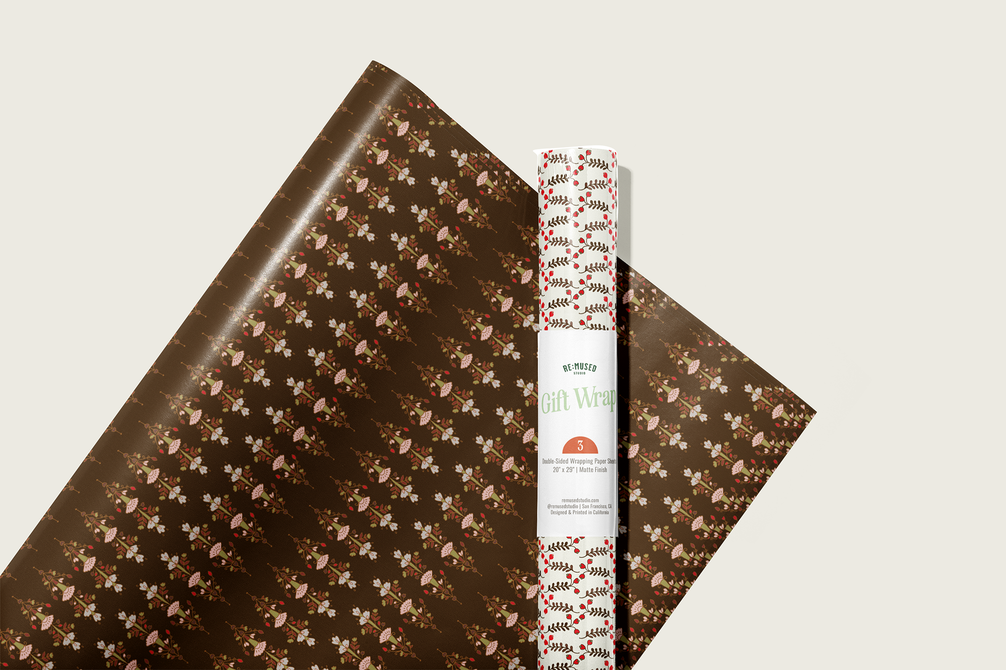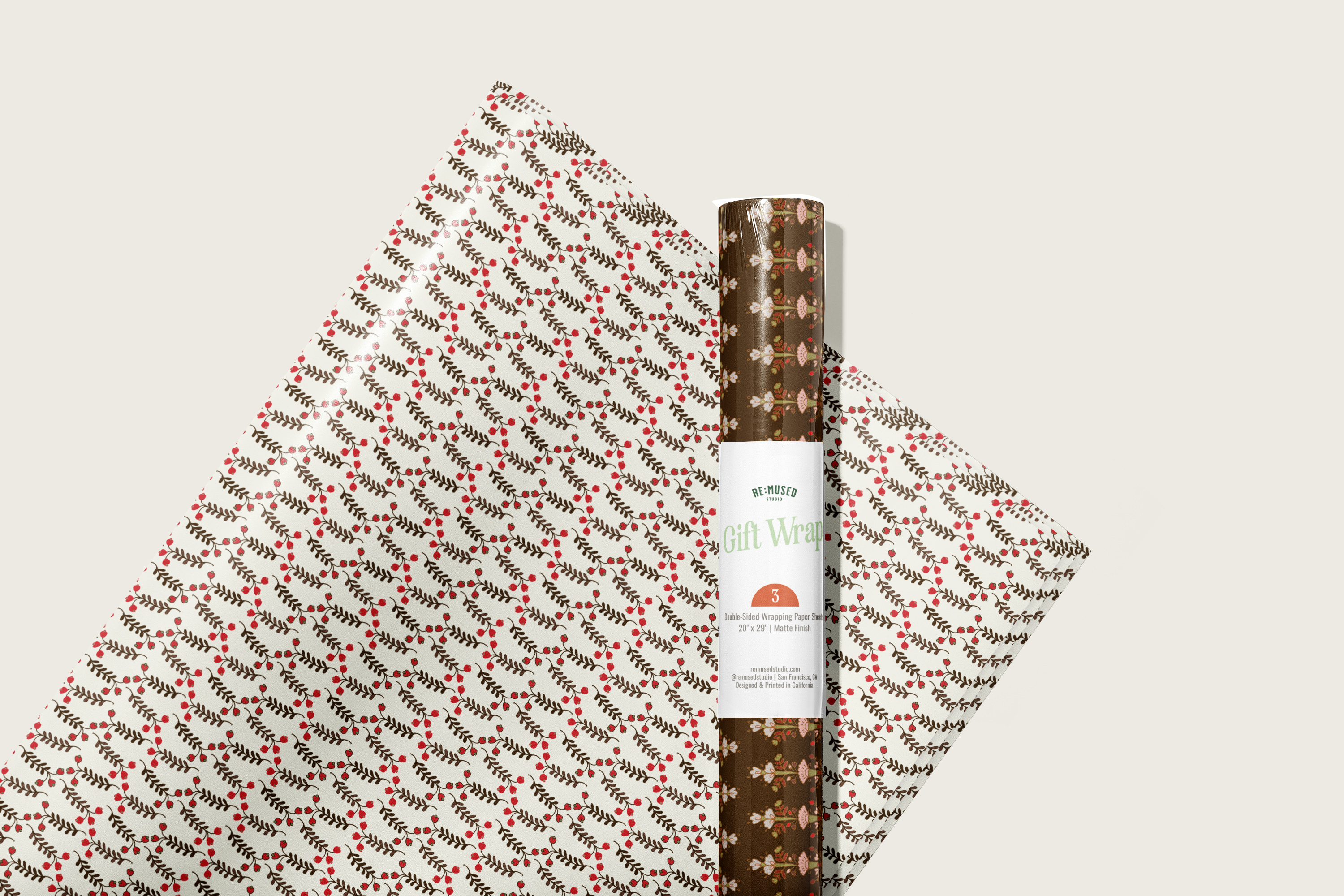 re:mused studio - Cocoa Berry Gift Wrap Sheet – Double Sided: Roll of 3 Sheets