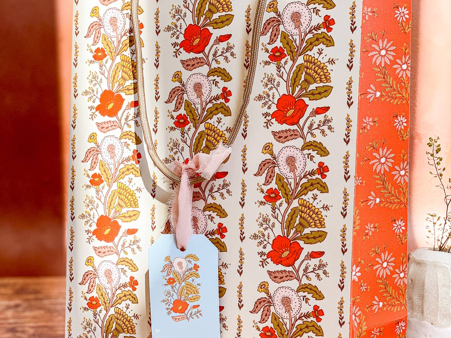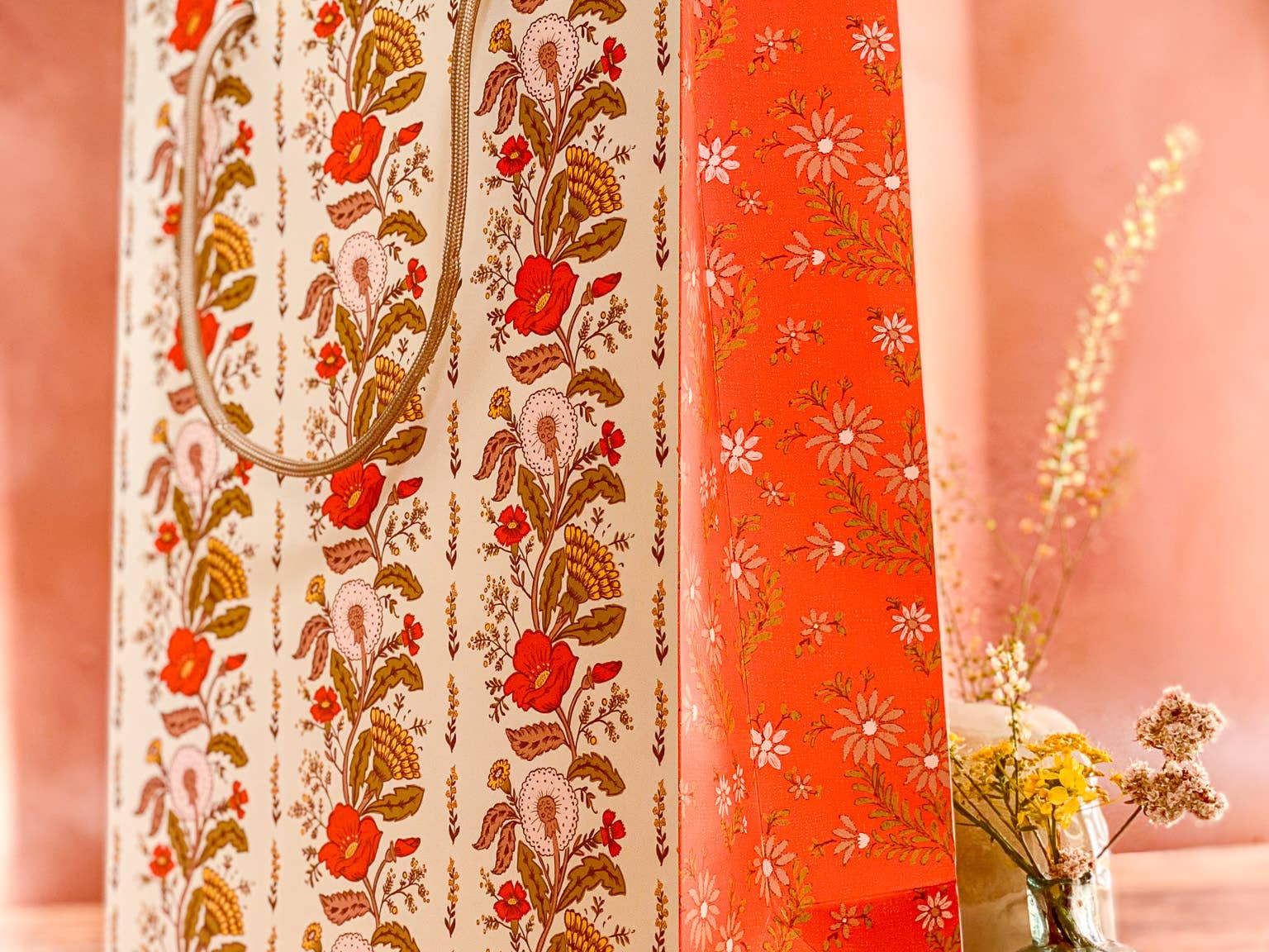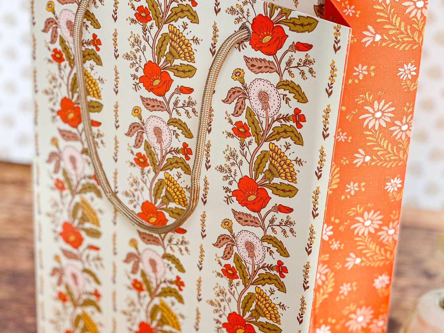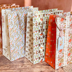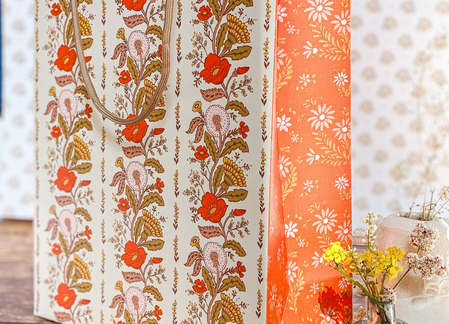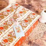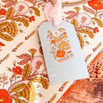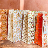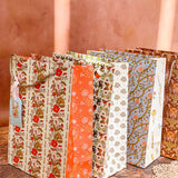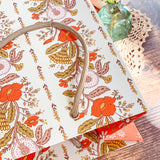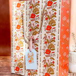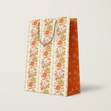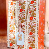 Make gift wrapping easy with the “Sunlace” Gift Bag. Whether on it’s own or paired with our double-sided gift wrap, our premium gift bags will make for an extra special gifting presentation. Featuring a pair vintage textile inspired botanical floral patterns wrapped in a warm wildflower palette with yellows, oranges, pale pinks and greens. Soft, sun-soaked, and slightly romantic, it has a nostalgic charm of 60s/70s floral prints and embroidered flower fabrics. Wonderful for Summer and Fall birthdays, housewarmings, baby showers, weddings and beyond.