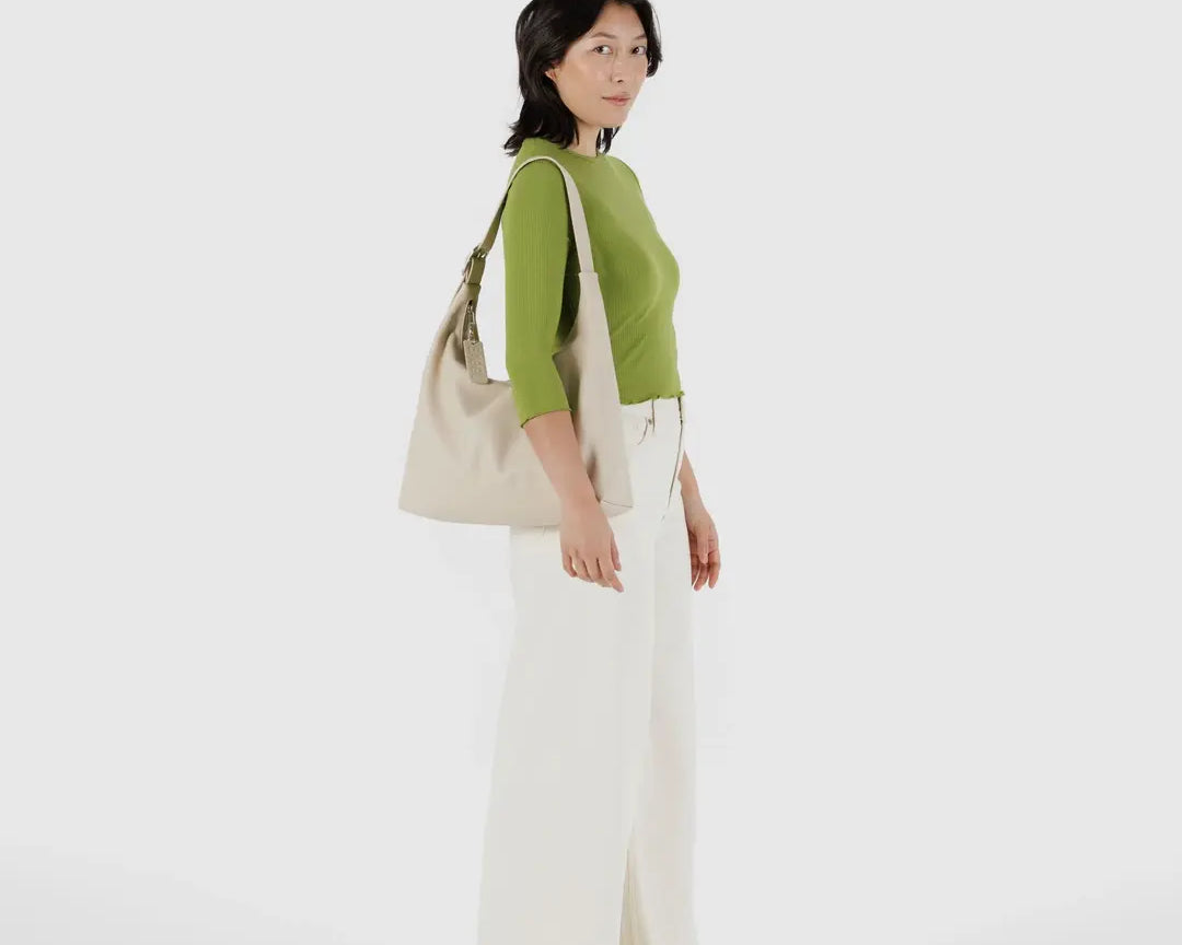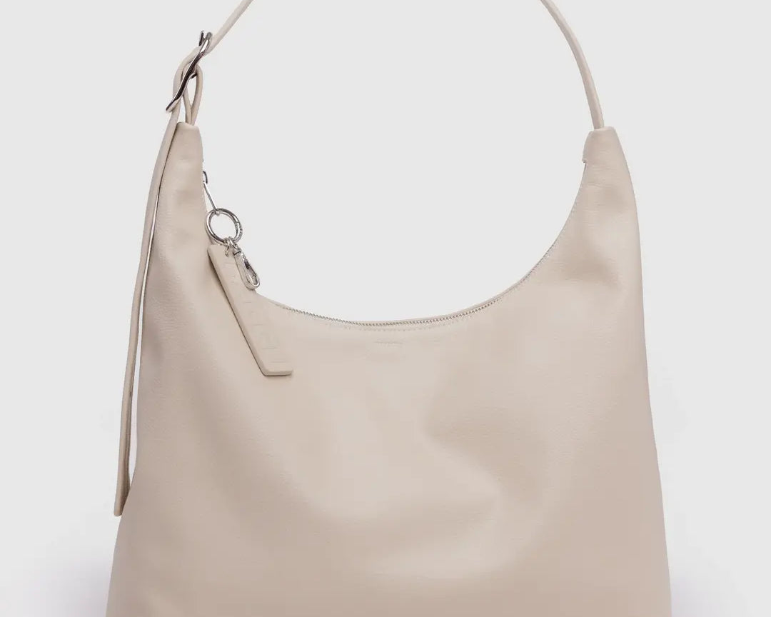 Recycled Leather Shoulder Bag - Stone - BAGGU