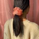 Mini scrunchies made in Philadelphia out of sheer 100% nylon organza. Diameter measures about 5". Hand wash, Air Dry.