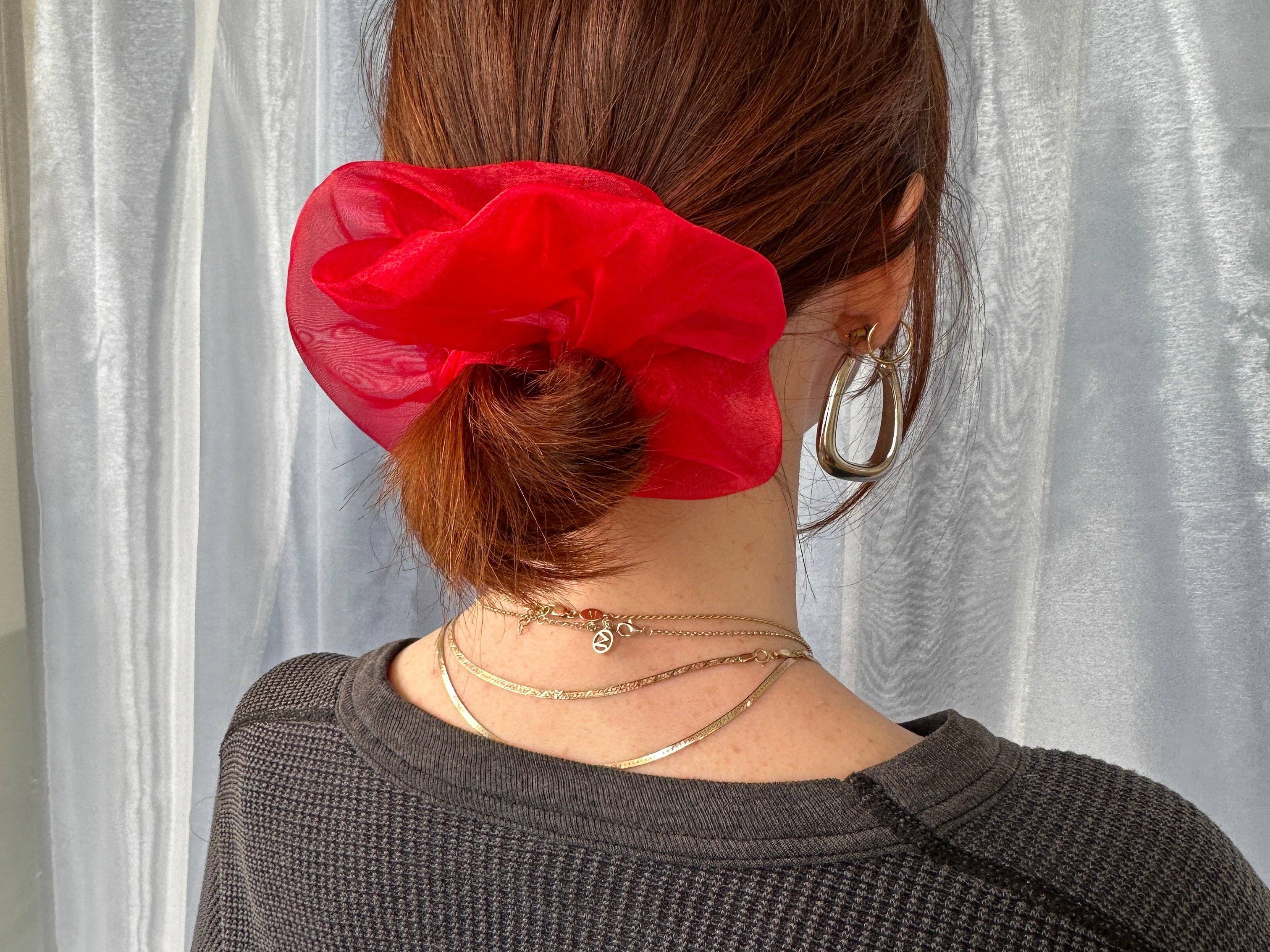 Mini scrunchies made in Philadelphia out of sheer 100% nylon organza. Diameter measures about 5". Hand wash, Air Dry.