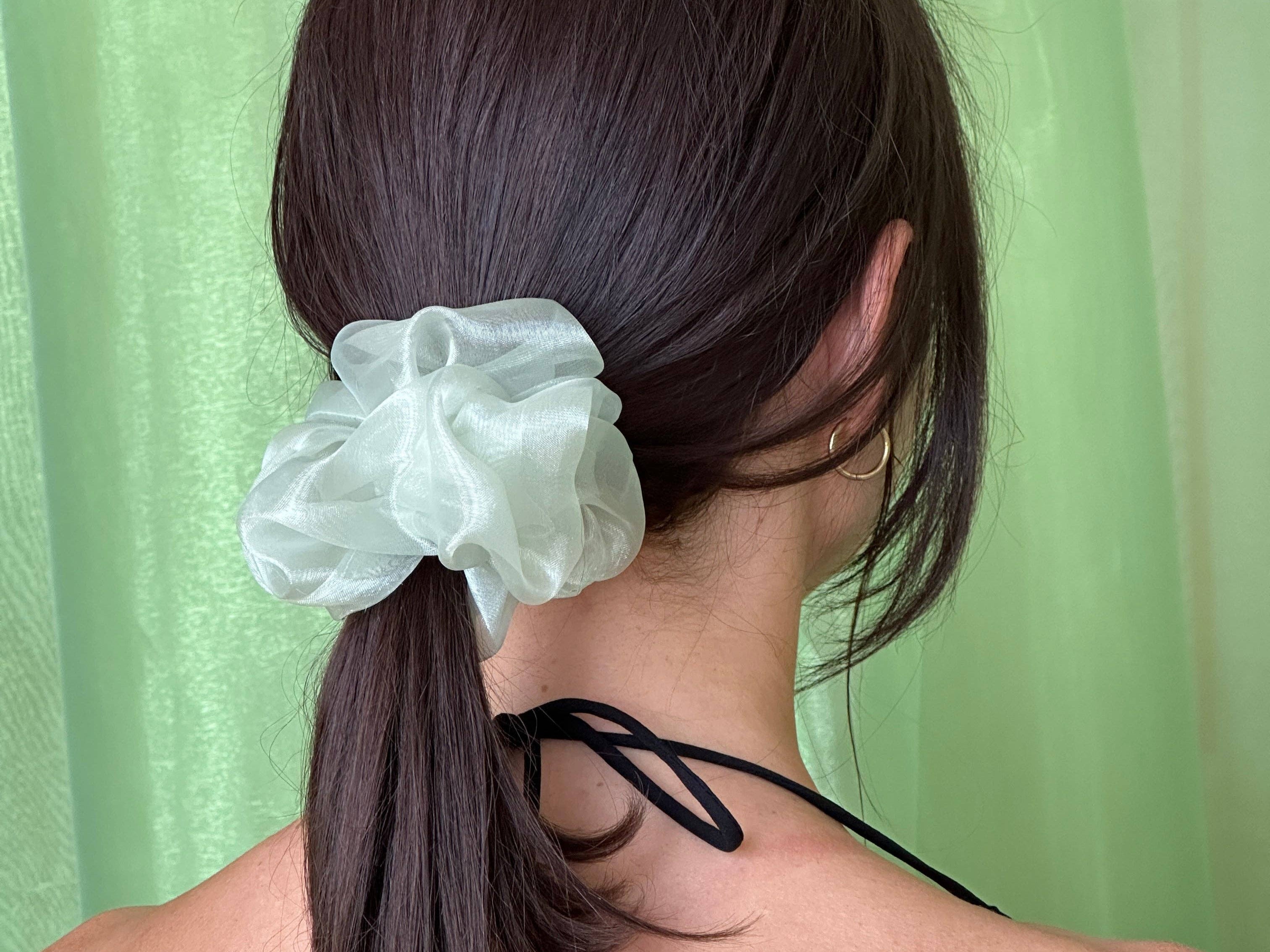 Mini scrunchies made in Philadelphia out of sheer 100% nylon organza. Diameter measures about 5".