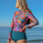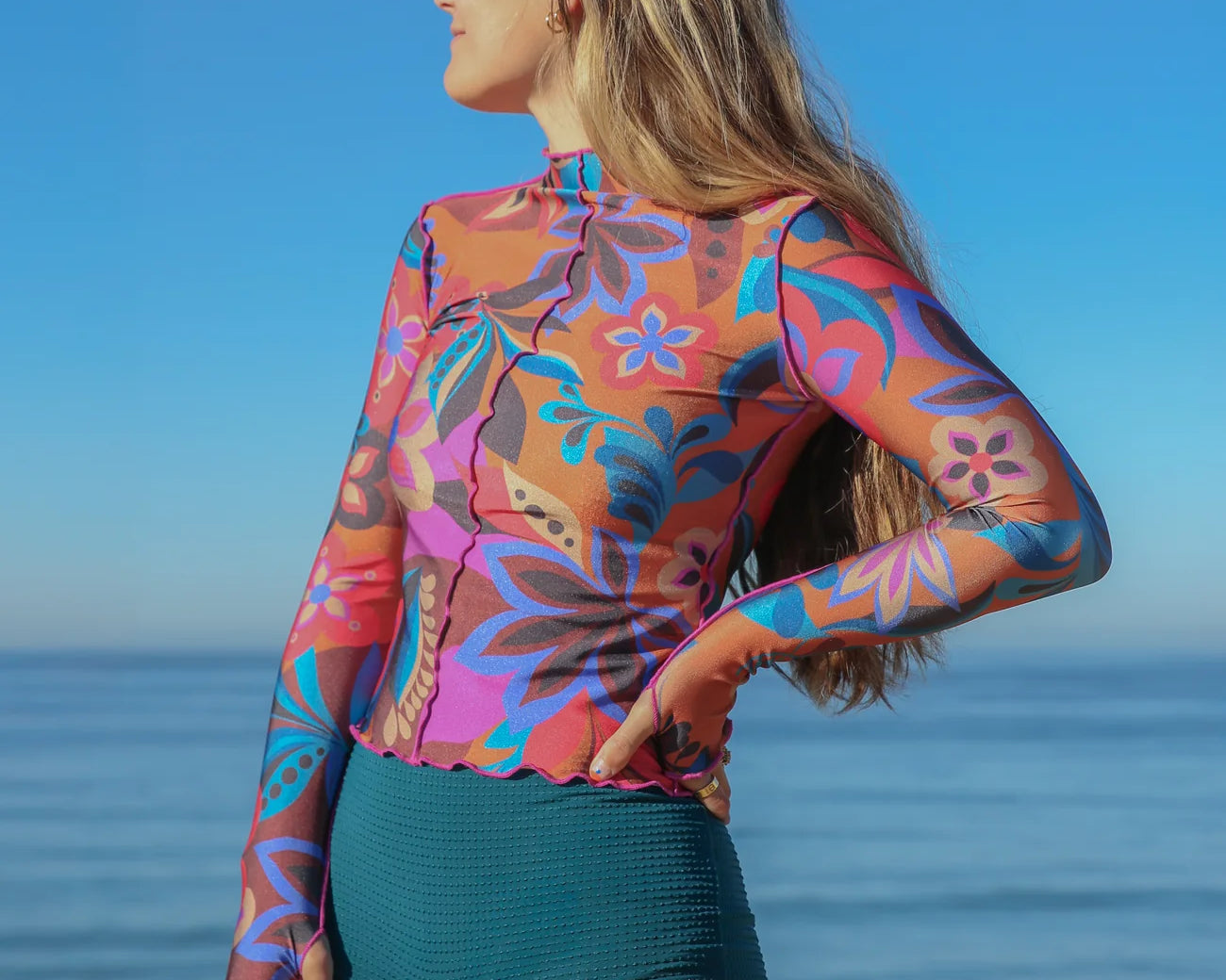 Longer than our cropped rashguard, wear the Sila straight from the beach to a night out with friends.