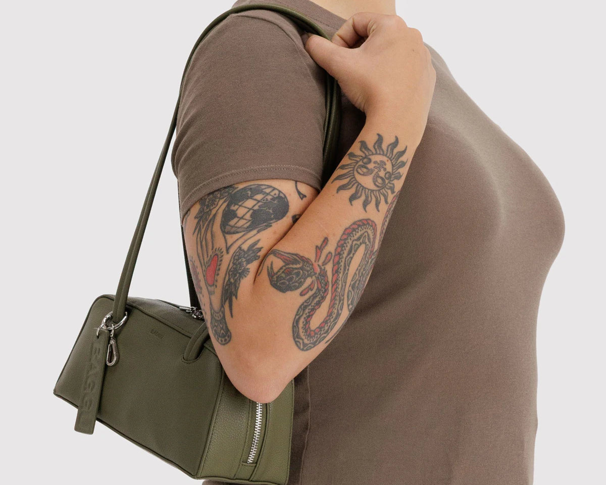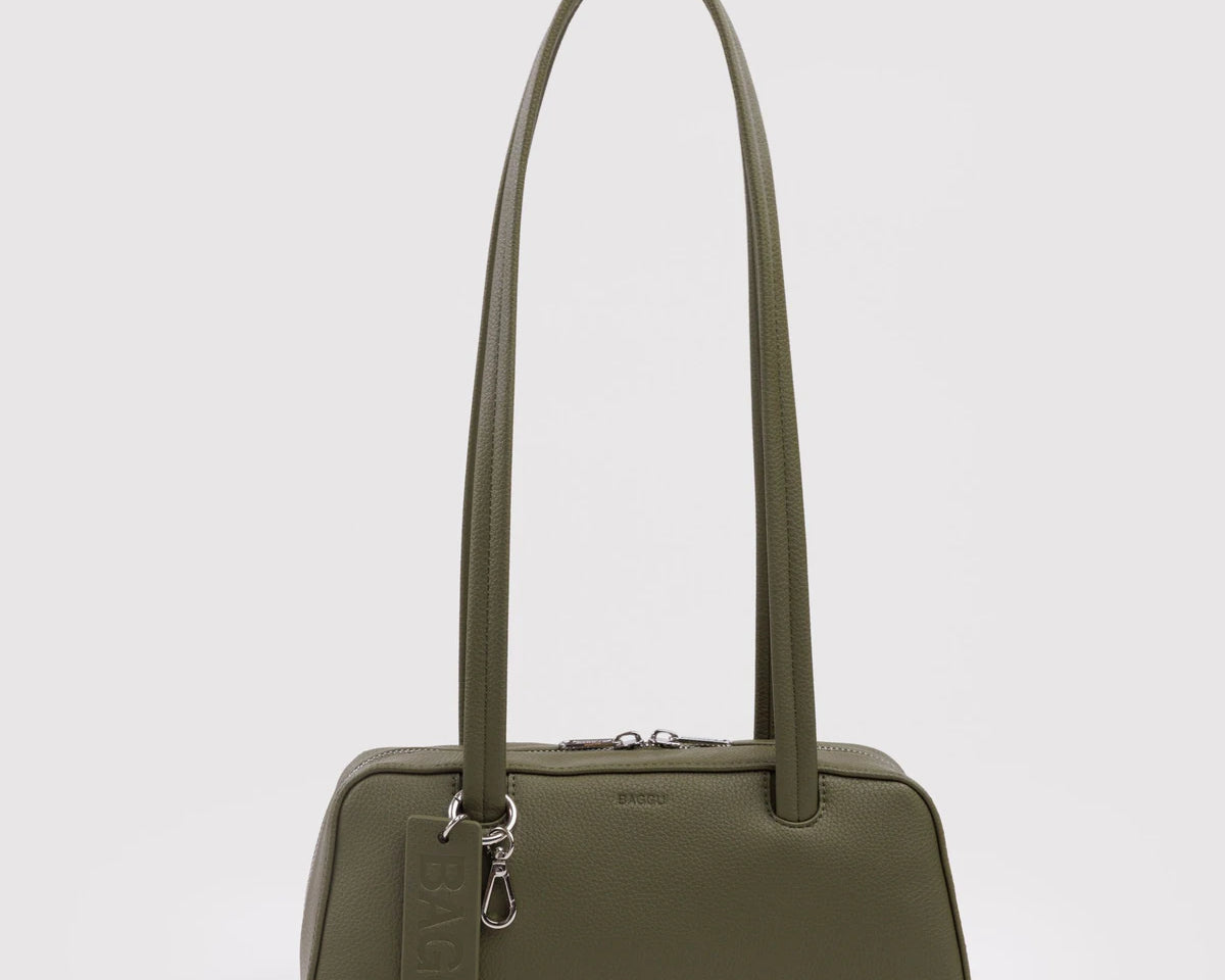 Small Recycled Leather Bowler Bag - Loden | BAGGU