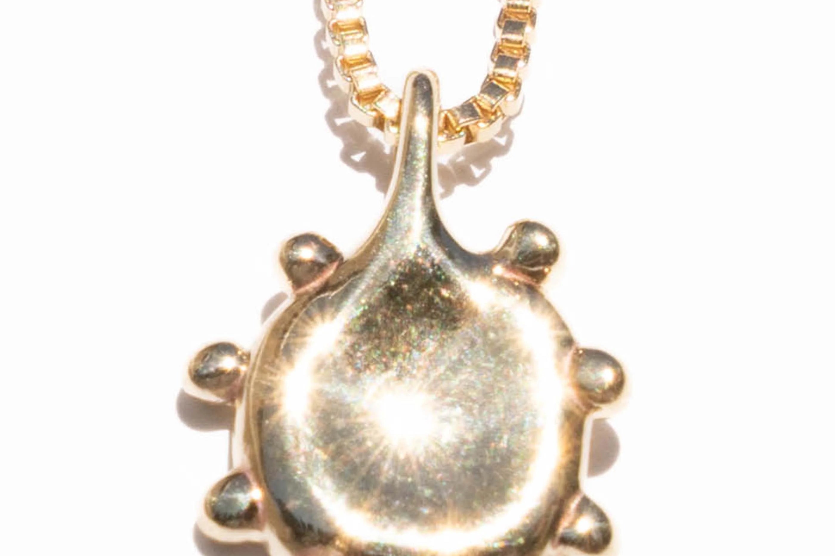 Hand carved and cast with a high polished mirror finish. Pendant is available in solid brass or sterling silver paired with a 16” chain. Pendant measures approximately 11mm in diameter. We love mixing metals, if you would like to change the chain please send us an email prior to ordering.