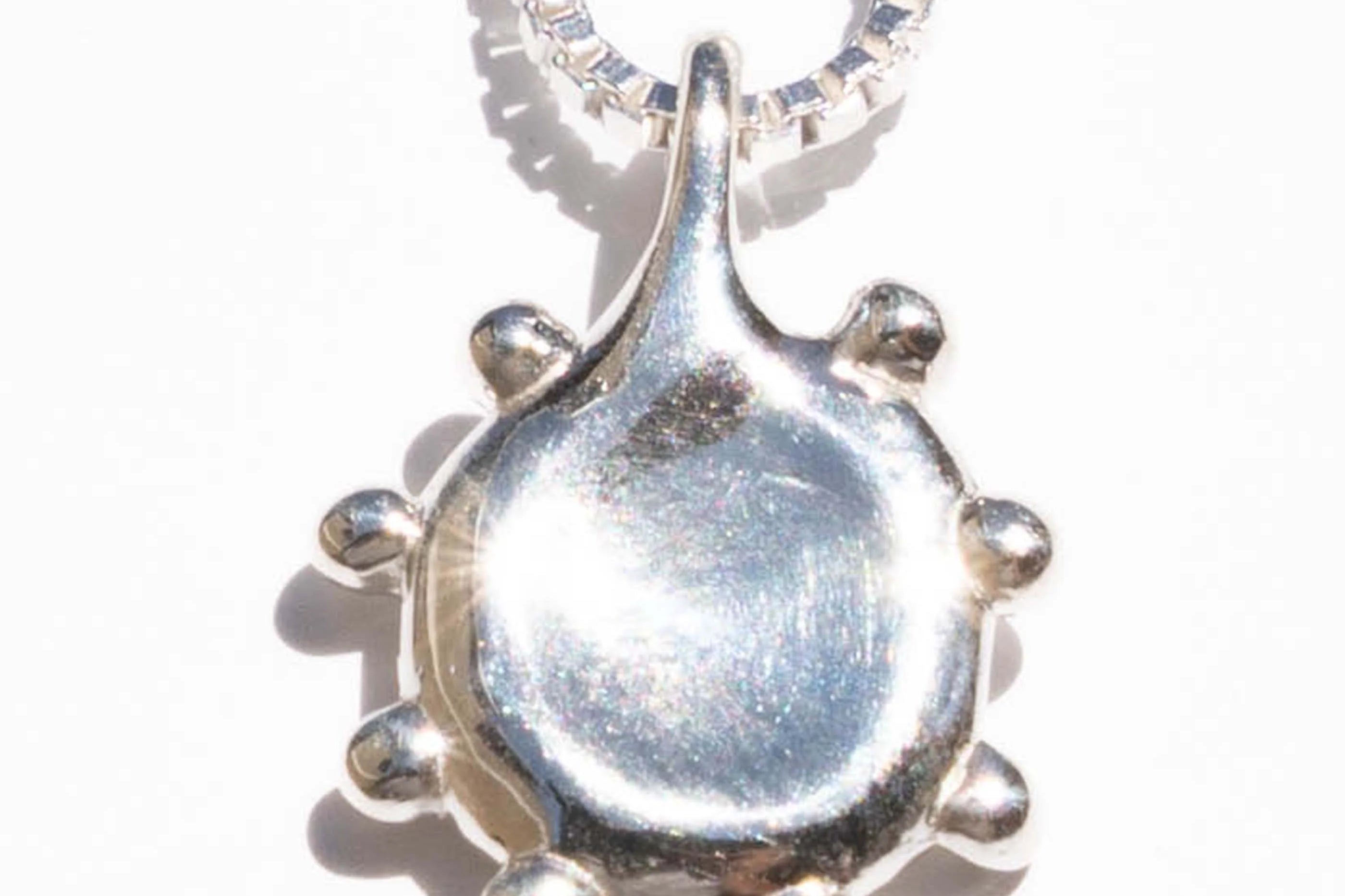 Hand carved and cast with a high polished mirror finish. Pendant is available in solid brass or sterling silver paired with a 16” chain. Pendant measures approximately 11mm in diameter. We love mixing metals, if you would like to change the chain please send us an email prior to ordering.