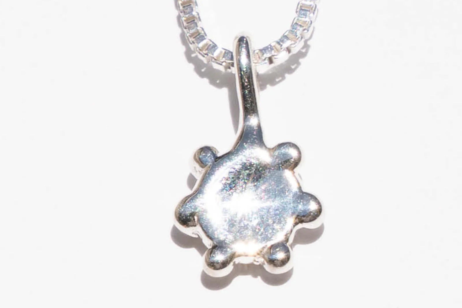 Hand carved and cast with a high polished mirror finish. Pendant is available in solid brass or sterling silver paired with a 16” gold filled chain. Pendant measures approximately 7mm in diameter. We love mixing metals, if you would like to change the chain please send us an email prior to ordering.