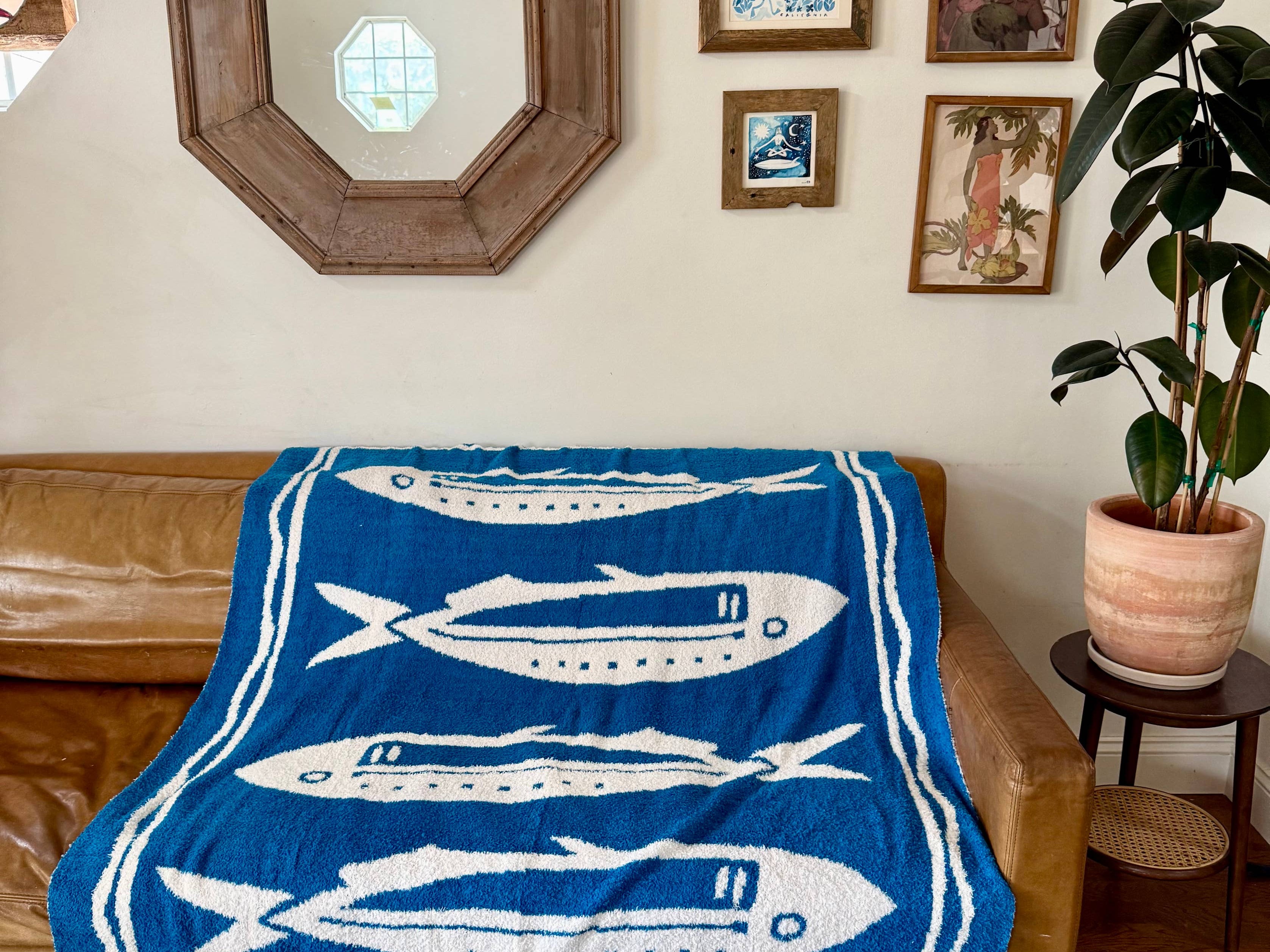 Sundream - Pacific Row Plush Throw - Swell Blue