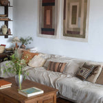 The canvas comes with sewn eyelets and nails for out-of-the-box easy hanging.