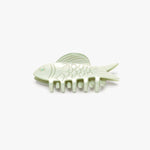 Jade Fish Mini Claw A little jade fish to complete any look. Subtle and sweet, we like to think of this as a good luck charm for your hair. Perfect to wear with our Lucky Fish cotton bandana! If you love this style, check out our Jade Fish French Barrette, and Jade Fish Barrette Set! -≈ 3 inches -made from cellulose acetate -sold as a single claw *Please note that due to the nature of the material, each hair accessory will have differences in color and pattern. Each hair accessory is made from individually cut pieces of cellulose acetate. Each one is unique!