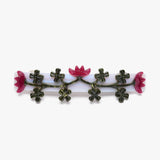 Crimson flowers dot a chain of clovers. A french barrette inspired by the intricate flourishes of medieval manuscripts. The perfect piece for a timeless beauty.