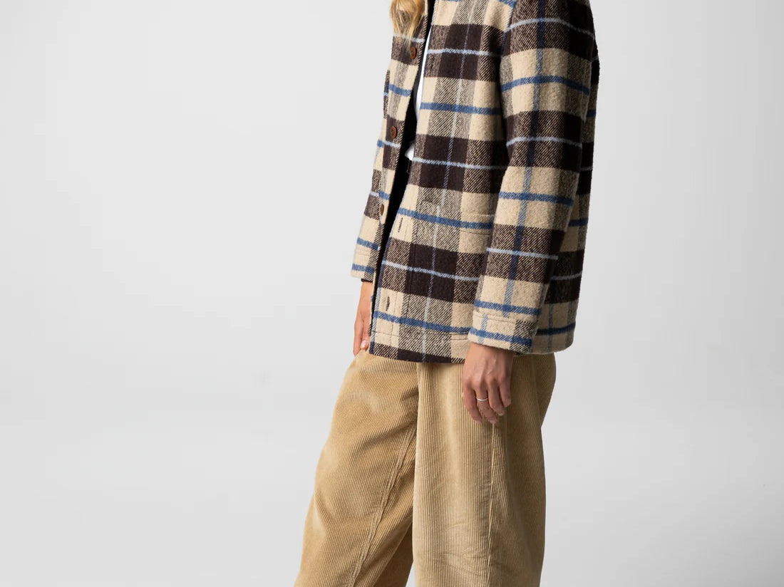 Built in a hard-wearing, tightly woven wool blend fabric, it's warm, relaxed and ideal for throwing on over knits, sweats and T-shirts. Created in a traditional blanket style check, you'll be reaching for this on camping trips, post-surf and first thing in the morning for the commute.