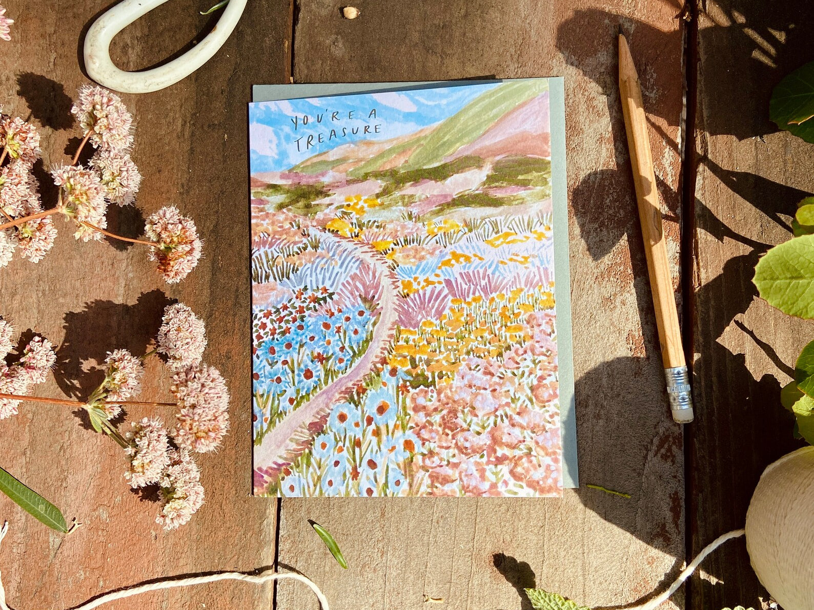 This beautiful card is inspired by the central coasts of California and is sure to delight its recipient. Recommended to pair with a gift for wildflower lovers, moms, sisters, besties, wifeys, girlfriends and beautiful souls.